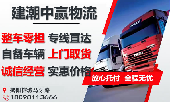 揭阳到四平物流公司为工厂、贸易商、批发商等货主提供整车、零担、大件运输、普快特快、搬家搬厂、回程车调用等全方位的物流服务。为了降低客户的物流成本,建潮中赢物流都可以通过遍布珠三角的合作物流专线为您服务。